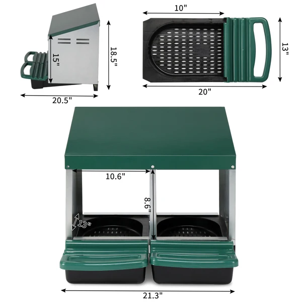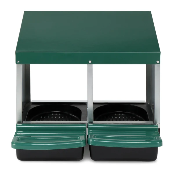 Introduce comfort and security to your poultry with our 2 Compartment Chicken Nesting Box, designed to cater to the natural brooding instincts of hens, ducks, and other poultry. This hen-friendly nesting box provides a safe and private space for laying, ensuring your chickens feel secure. Constructed from sturdy steel and durable plastic, it's built to last through various weather conditions, making it an essential addition to your chicken coop. Its hen-friendly design and protective features make egg collection a breeze while keeping your flock comfortable.