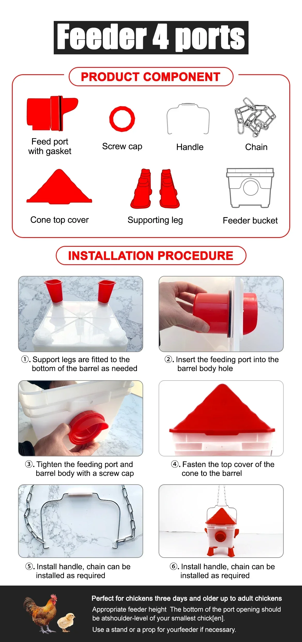 Product DescriptionDIY A Coop 4-Port Chick2Chicken Feeder for Poultry / Chicks / Quail
